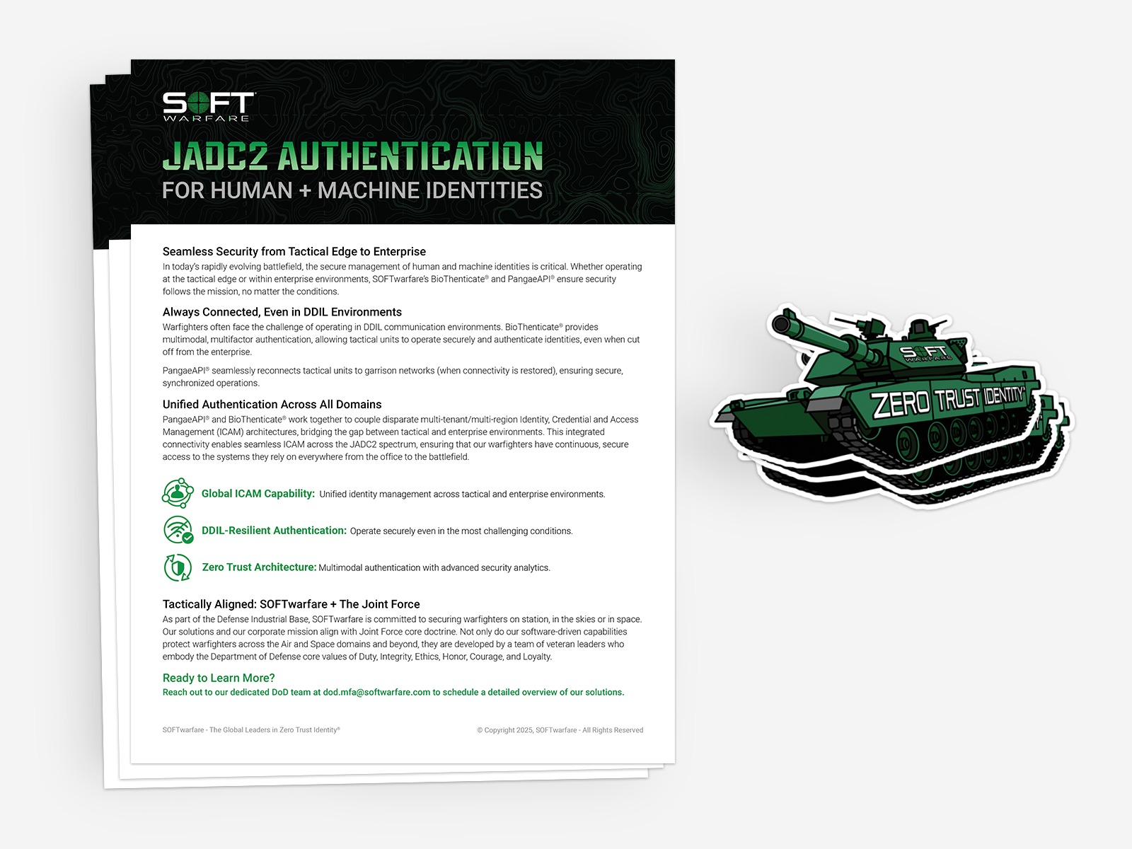 SOFTwarfare attended as an exhibitor to announce a groundbreaking advancement in its Zero Trust Identity® platform. The new solution was specifically designed to meet the stringent authentication and Identity, Credential, and Access Management (ICAM) requirements for Department of Defense (DoD) deployments within a Joint All-Domain Command and Control (JADC2) environment.