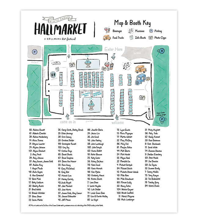 Hallmarket is Hallmark’s annually recurring art festival during which employees can sell their goods and services to the public. In 2018, I worked with both a Visual Studios designer and separate production designer to create and assemble printed and digital signage for the event.